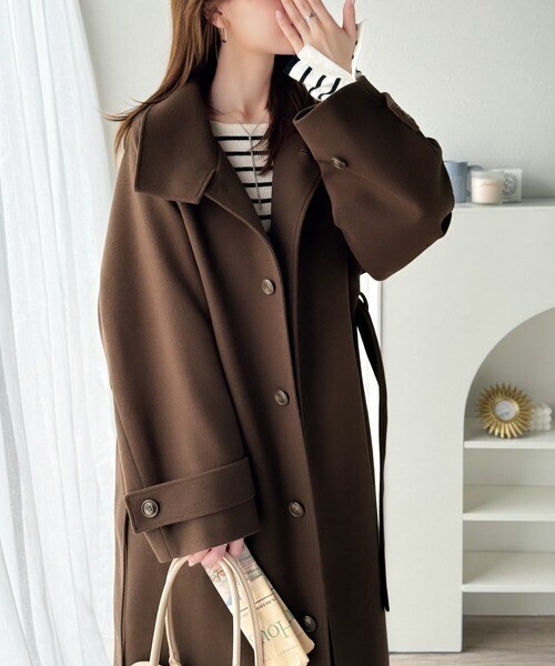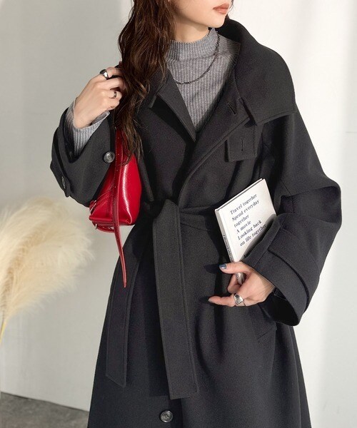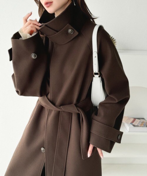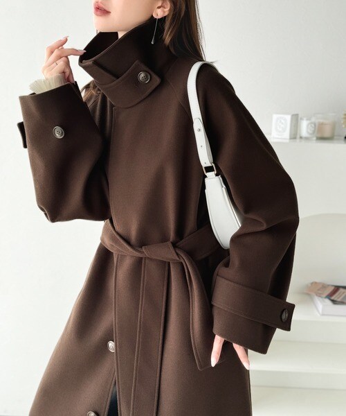 【2025AW新作】360度上品魅せ。衿2way比翼スタンドウール調ステンカラーコート(ロング丈)