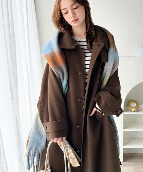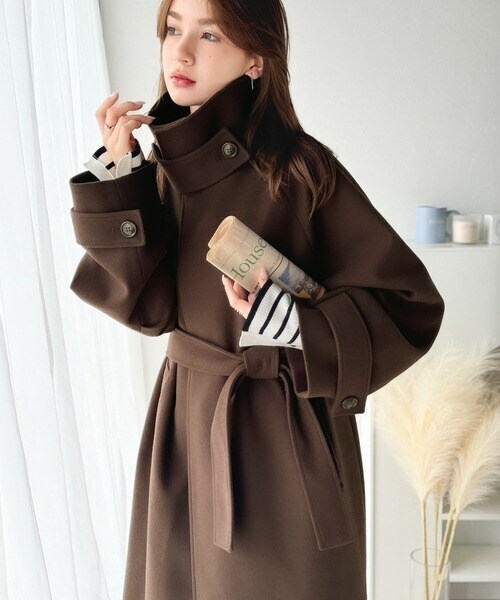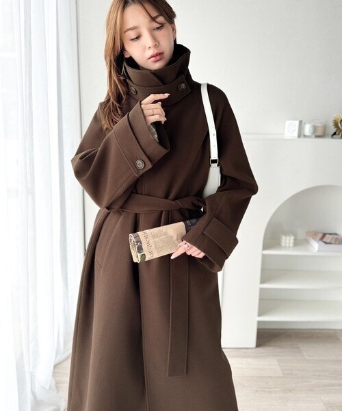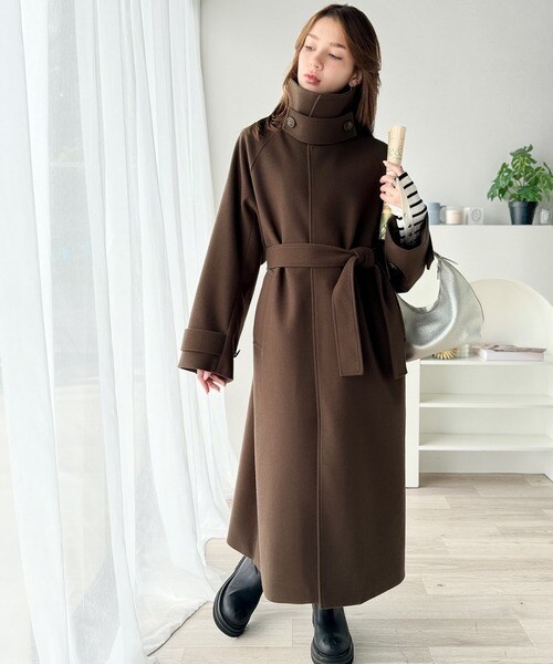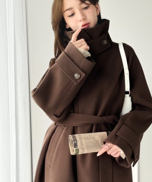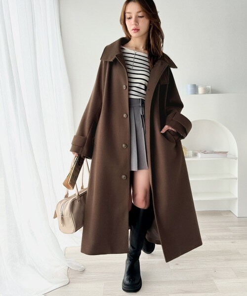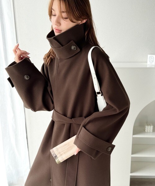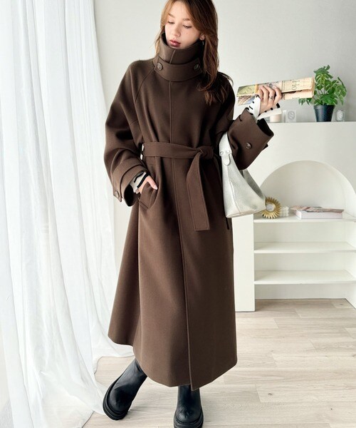 クラシカルエルフ(Classical Elf)/【2025AW新作】360度上品魅せ。衿2way比翼スタンドウール調ステンカラーコート(ロング丈)