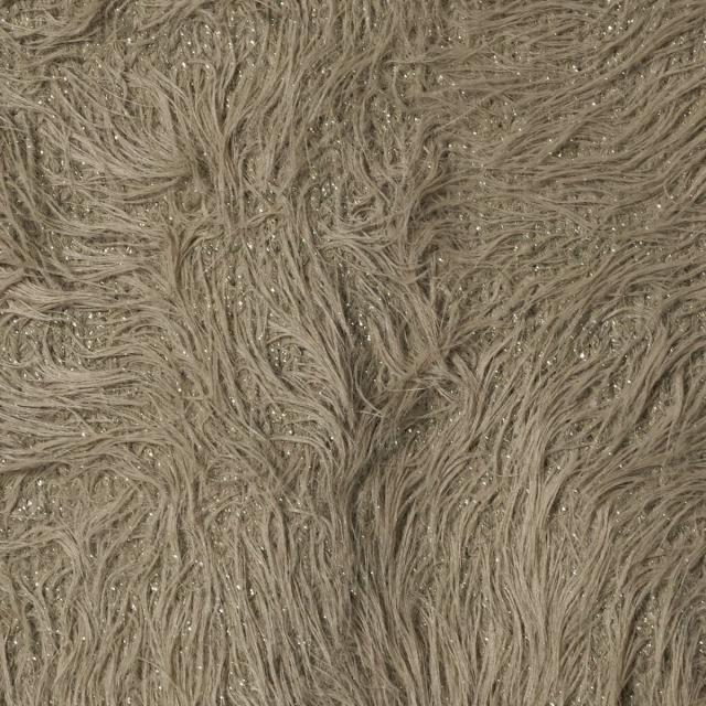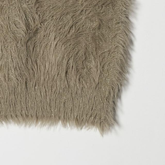 ふわふわとした毛足の長いフェザーヤーンにラメ糸を織り込んだ、さり気なくも存在感のあるアイテム。