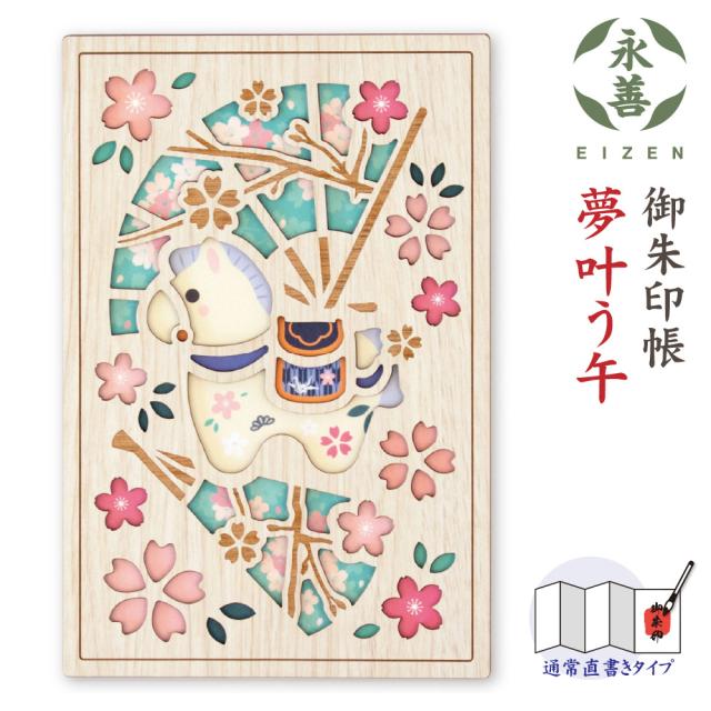 御朱印帳 夢叶う午 ゆめかなううま 木製 25150CMA 永善 EIZEN B6変型判 120×180mm 36ページ 高級 スタンプ帳 アルバム帳 透かし彫り ギフト プレゼント カジュアル お出かけ ご朱印 神社 お寺 寺院 手帳 参拝 ノート 小物 グッズ