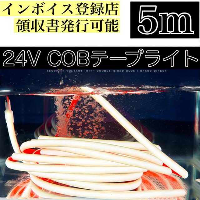COB 24V LEDテープライト 5M 極薄 防水 ホワイト 白 面発光 LED 両面テープ チューブライト 切断 柔軟 トラック 船舶 マーカー 工事