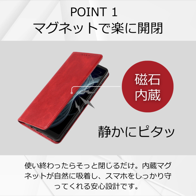 マグネット開閉で使いやすく、横置きスタンドとしても活躍します。