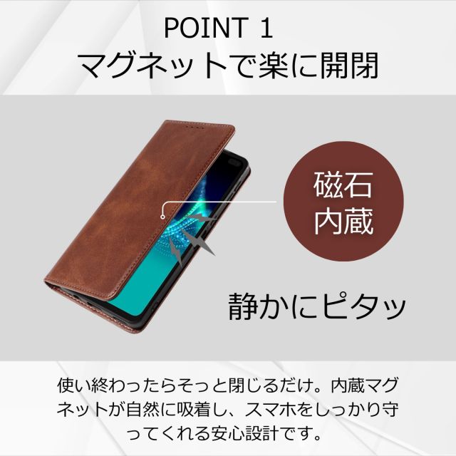 マグネット開閉で使いやすく、横置きスタンドとしても活躍します。