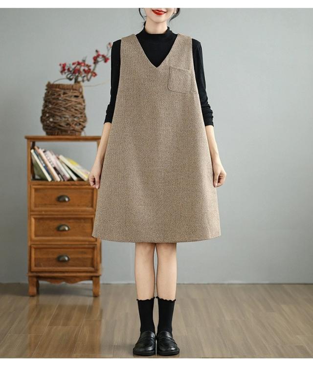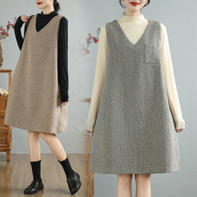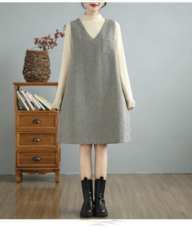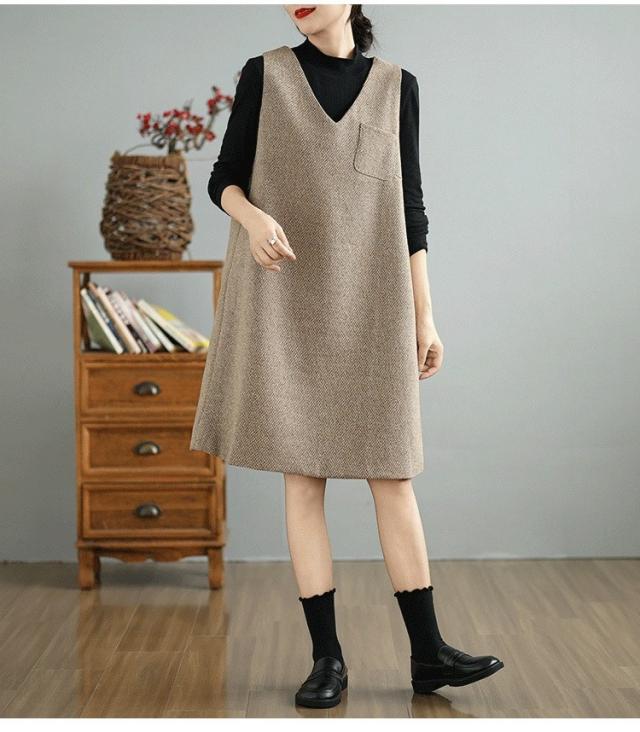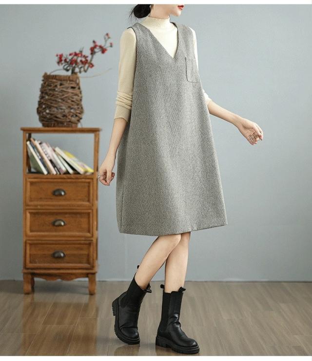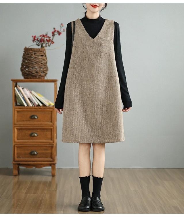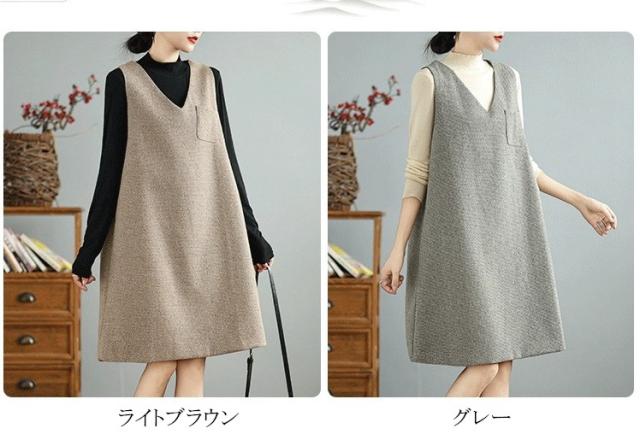 ワンピース Vネックジャンパースカート ロングワンピース 秋冬 レディースレディースファッション ワンピース
