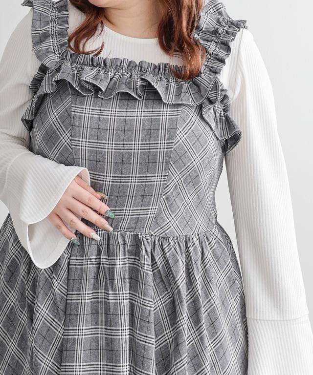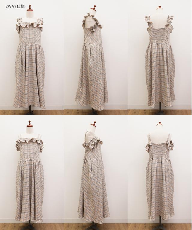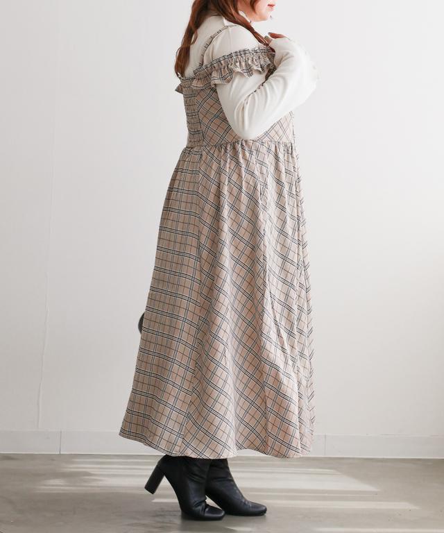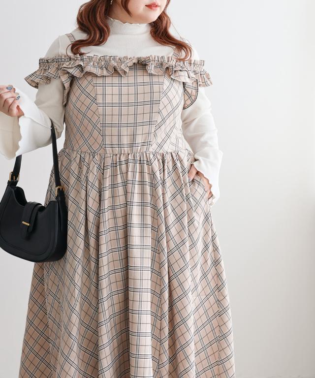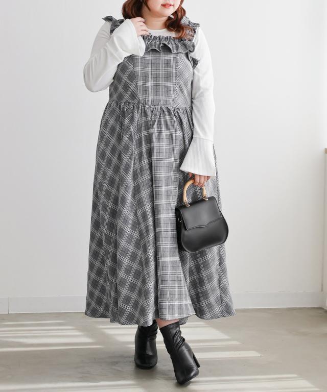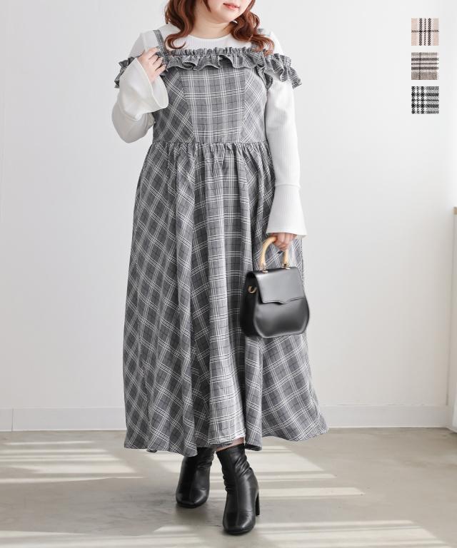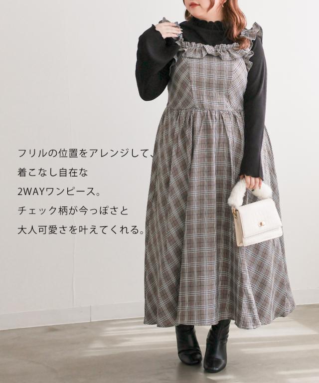 大きいサイズ/レディース/LL/3L/4L/CLETTEオリジナル2WAYフリルチェック柄ワンピース