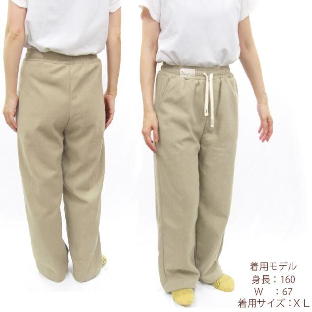 裏ボア コーデュロイ パンツ イージーパンツ ワイド レディース ウエストゴム 裏起毛 ボアパン リラックス