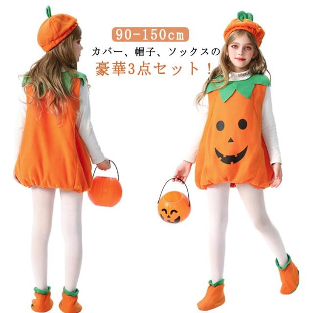 ハロウィン コスプレ 子供 カボチャ 90cm 100cm 110cm 120cm 130cm 140cm 150cm ハロウィン 衣装 子供 かぼちゃ 男の子 女の子 ベビー キッズ お化け デビル コスプレ 着ぐるみ 仮装 3点セット コスチューム 仮装 パンプキン おばけ デビル なりきり コスプレ