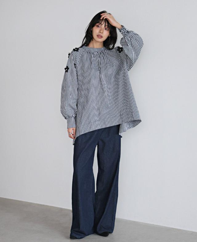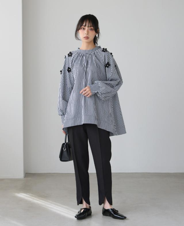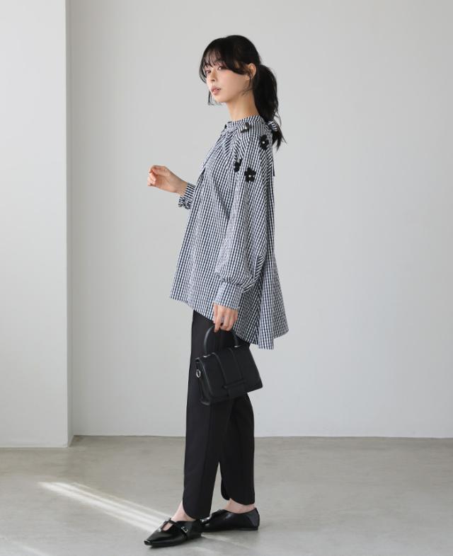 ![]() ![]() ![]() ![]() ![]() ![]() ![]() ![]() ![]() ![]() ![]() ![]() ![]() ![]() ![]() ![]() ![]() ■Comment 立体的な花のモチーフを散りばめ、パールで飾り付けしたブラウス。 たっぷりと生地を使ったAラインで、気になる腰回りをカバー。 ギャザーを入れたモックネックは、後ろでリボンを結ぶデザイン。 袖口は内側にシャーリングを入れ、ふっくらとしたボリュームスリーブ。 大人の可愛さが詰まった、拘りのアイテムです。 ■Size(cm) 【F】:着丈65/77 バスト120 裄丈77 袖口22-30 天幅22 涙開き14 裾周り176 ■Fabric 本体:ポリエステル65% 綿35% 別布部分:ポリエステル95% ポリウレタン5% 生地感:さらっとした、少しハリ感のある生地 裏地:なし 伸縮性:なし 透け感:若干あり 生地の厚さ:普通 ■Weight 約226g ■Color ギンガムチェック(標準的な黒×白) ■Country of origin 中国 ■洗濯表示 ![]() ■Attention ※ご覧になるモニターや環境により実際の商品と色味が異なる場合がございます。予めご了承ください。 ※実寸サイズは平置きメジャー採寸のため若干の誤差が生じる場合がございます。 ※お取り扱い・お洗濯につきましては、付属の商品タグをご使用前に必ずご確認下さい。 ※濃色の商品は色落ち・移染する可能性がございますので、お取り扱いにはご注意下さい。 ※繊維製品のため、同じ商品であっても生産時期やカラーによって伸縮率・生地感・色味が多少異なる場合がございます。特にニット製品に関してはプレス・洗い加工等で5cm前後の誤差が生じる場合がございます。 これらは品質上問題はございません。予めご了承下さい。 ■Staff comment AI/身長:154cm(普段のサイズ:M-L) 体型:骨格ストレート 全体的に厚みのある、産後体型。 トップスはMサイズを選ぶ。 ウエストと腰回りが大きく、ボトムはLサイズを選ぶこともあります。 【着丈】前は脚の付け根下12cmで、後ろはヒップ下14cm。 【袖丈】伸ばすと指の付け根で、袖口は手の甲で止まる。 【一言コメント】 裾に前後差があり、フレアなので脚が細見えします。 AYA/身長:158cm(普段のサイズ:M) 体型:骨格ウェーブ 上半身筋肉質の標準体型。肩幅は広くバストは平均。 ウエストは細くヒップが大きいので、 ヒップに合わせてボトムは選びます。 【着丈】前は脚の付け根下9cmで、後ろはヒップ下11cm。 【袖丈】伸ばすと親指付け根で、袖口は手の甲で止まる。 【一言コメント】 ディティールに拘った可愛いデザインで、しっかり体型カバーもしてくれるので一石二鳥です。 RISA/身長:165cm(普段のサイズ:L-LL) 体型:骨格ナチュラル 体に厚みがあるやや痩せ型。 バスト・ウエスト・ヒップは標準ですが、 肩幅が広くて腕が長め、ふくらはぎは筋肉質。 身長が高いため普段Lサイズを選びます。 【着丈】前は脚の付け根下4cmで、後ろはヒップ下6cm。 【袖丈】伸ばすと手の甲半分で、袖口は手首で止まる。 【一言コメント】 袖口の内側がシャーリングなので、袖の上げ下げに便利です。 |
