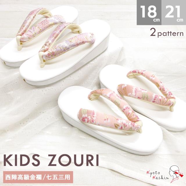 草履 七五三 753 3歳 5歳 7歳 女の子 エナメル 西陣 金襴 花柄 2color 18cm 21cm / ピンク 紫 白 おしゃれ かわいい / 子供用 履物 子ども キッズ 和装 着物 雛祭り 正月 お祝い 卒業式 袴 礼装 結婚式