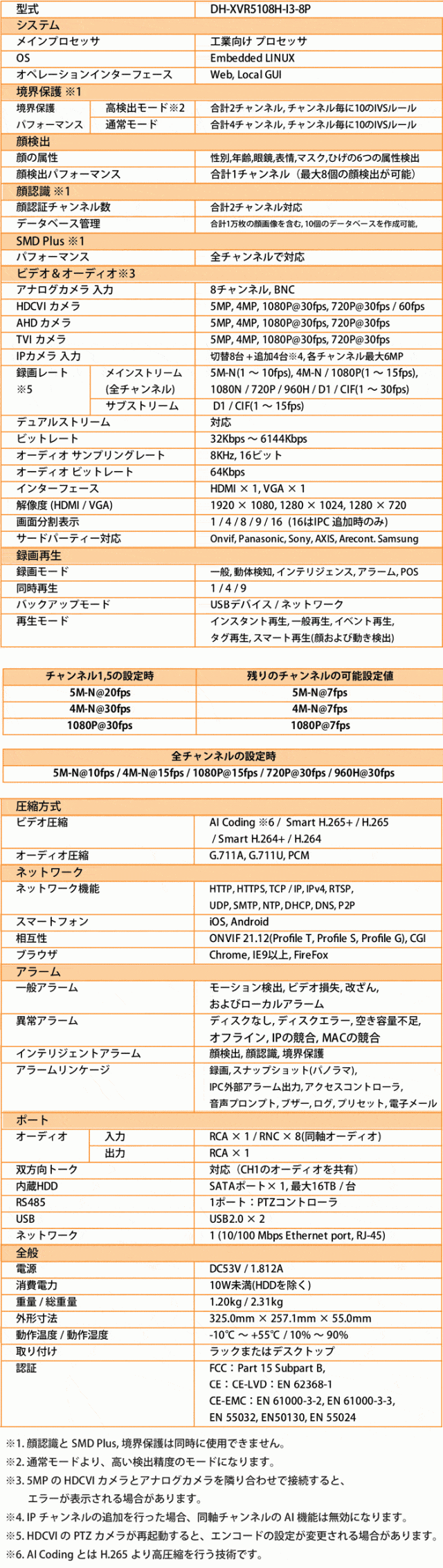 ■ AXR-XVR5108H-I3-8P(2TB) スペック