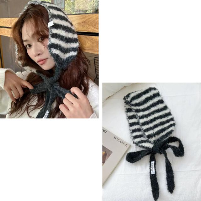 全品送料無料一部除く ボーダー柄 紐付き ニットイヤーマフ ma 【即納】冬小物 秋冬 韓国学生 マフラー 耳当て 耳あて イヤーマフラー 防寒対策 ファッション小物 イヤマフ 冬キャン レディース 韓国 Y2Kファッション 韓国ストリート 流行り トレンド かわいい