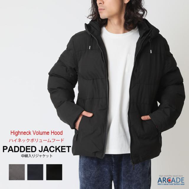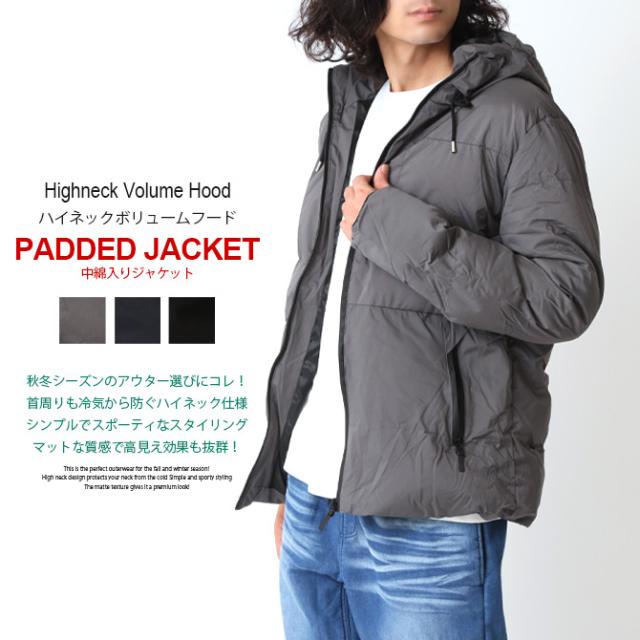 中綿ジャケット メンズ 横キルト ボリュームネックフード パーカーブルゾン 中綿入りジャケット ファイバーダウンジャケット メンズ 冬服