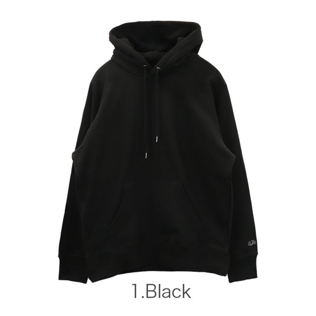 中番手のコットンを使用した、ほどよい厚みとハリのある生地感。また、フード部分には程よいふくらみを持たせることで、立体的なシルエットと自然なボリュームを演出しています。シンプルなデザインなので男女問わず、ユニセックスで着用していただけます。同シリーズ「BASIC SWEAT PANTS(#81350100)」とのセットアップもおすすめ。