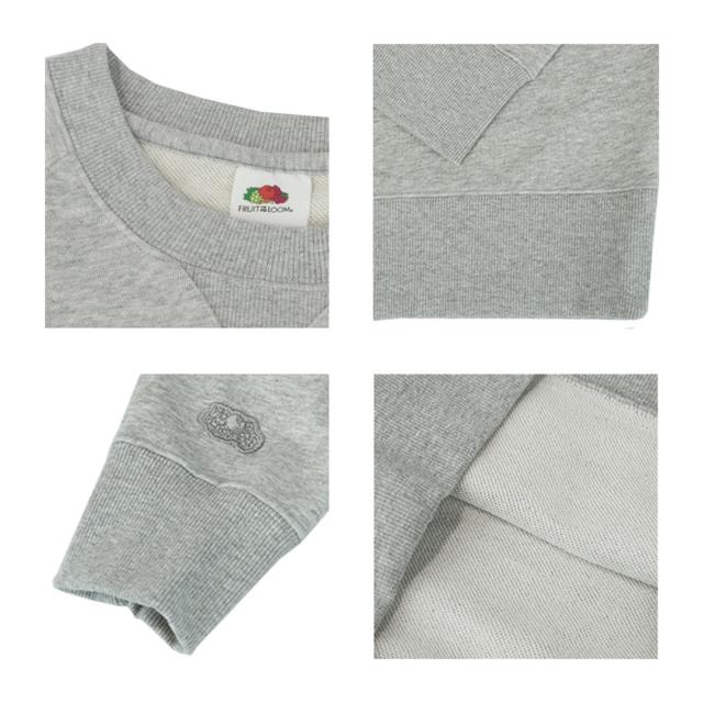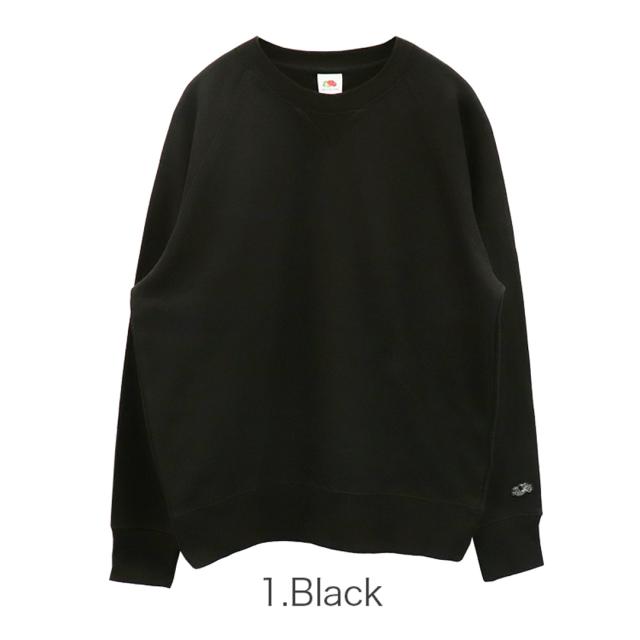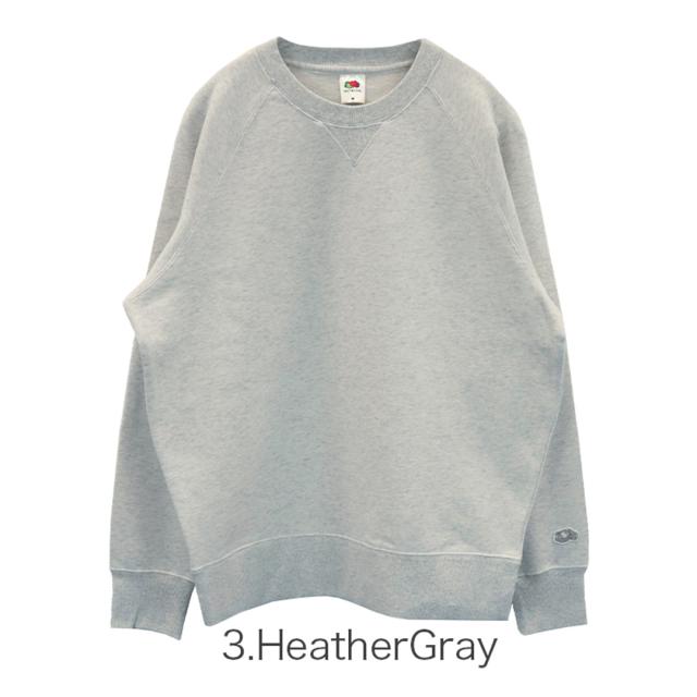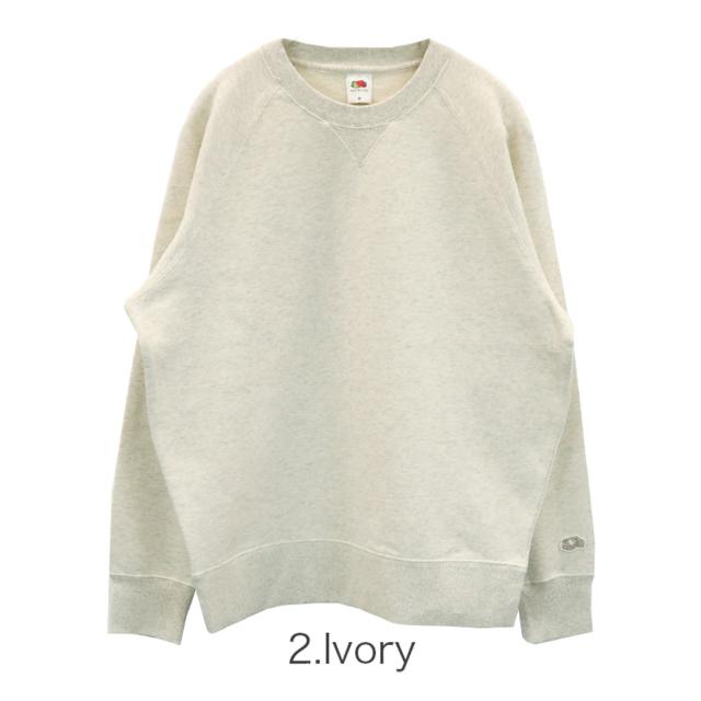 FRUIT OF THE LOOM/フルーツオブザルームより、裏毛の新定番 クラシックヘリテージシリーズの「BASIC SWEAT SHIRT(#81349900)」が入荷。アメリカンカジュアルに不可欠な無地のスウェットトレーナーで、袖口にはボディと同色のフルーツアイコンワッペンがさりげなくあしらわれています。どんなボトムスとも好相性で、幅広いコーデで活躍するベーシックトップスです。