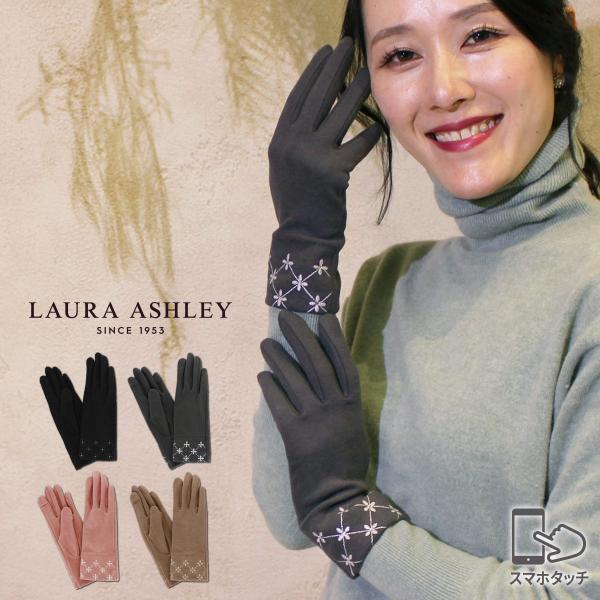 手袋 レディース ブランド 暖かい 指先が出る 指が出る スマホ対応 防寒 かわいい おしゃれ ギフト 秋冬 スマホ エレガント ローラアシュレイ 花 ラメ