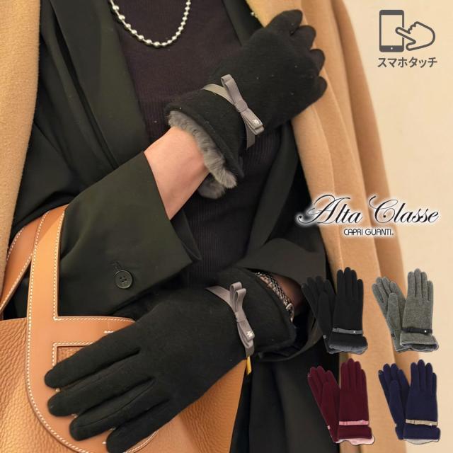 手袋 レディース ブランド 暖かい スマホ対応 防寒 リボン ラインストーン ファー レッキス ラビット かわいい 可愛い おしゃれ 自転車 秋冬 アルタクラッセ