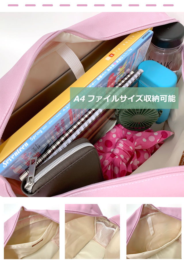■イメージ:おしゃれ かわいい お洒落 おすすめ 人気 通販 可愛い ガール 大人可愛い かっこいい ピンク 黒 ブラック 白 ホワイト ブランド 大きめ 大容量 A4 B4サイズ対応 a4サイズ対応 サブバッグ サブバック 通学バッグ 通学バック 入学祝い 新学期 入学準備 高校 中学 カラースクールバッグ ロコネイル ROCO NAILS プルメリア ギャル GAL 109系 渋谷 カラバ サブバ カラースクバ バッグ モバイルポケット 抗菌 防臭