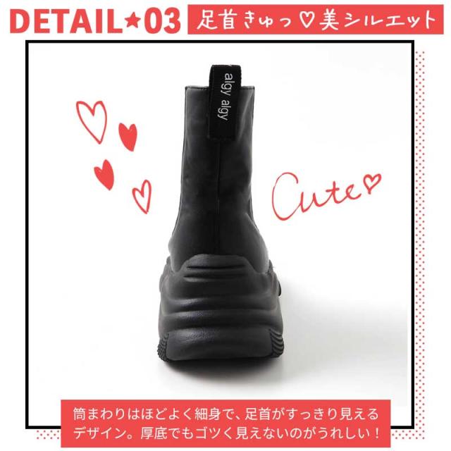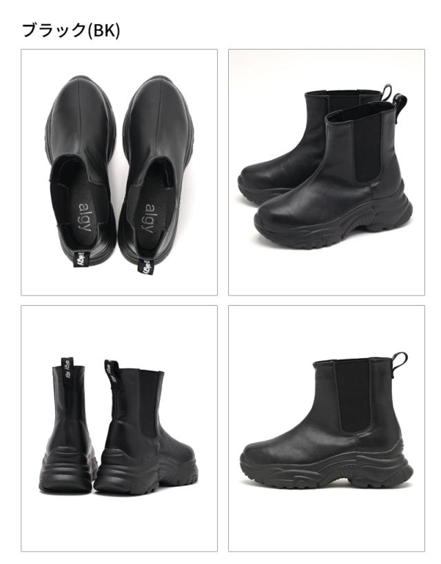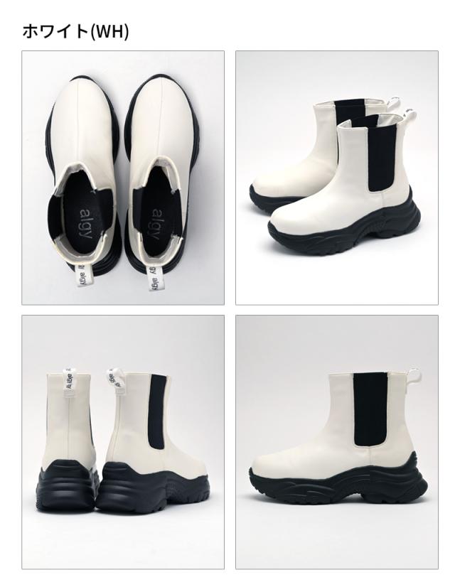 ショートブーツ 厚底 キッズ ジュニア ティーンズ 25秋冬新作 靴 サイドゴア ブラック/ホワイト 20-24cm かわいい おしゃれ 秋 冬 かわいい おしゃれ 小学生 中学生 小さいサイズ ALGY アルジー 送料無料