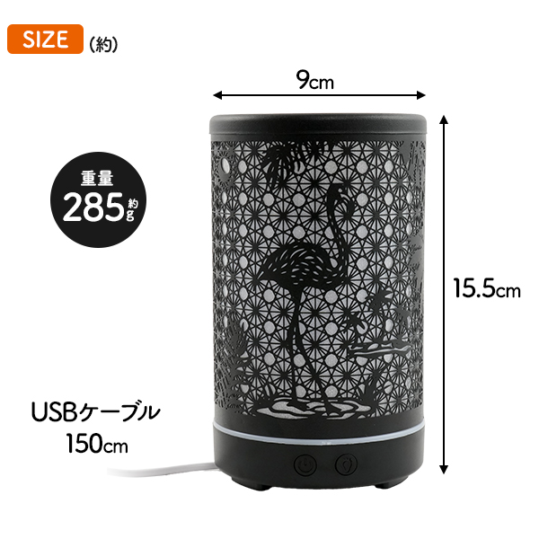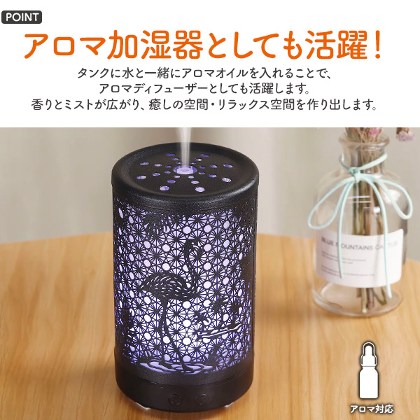 超音波加湿器 フラミンゴシルエット おしゃれ 加湿器 LEDライト タイマー付き USB電源 アロマディフューザー 透かし彫り風 切り絵風 インテリアライト 2種類のタイマー ベッドサイド 寝室 リビング 子供部屋 オフィス 加湿器本体 風邪 花粉 予防 対策 家電