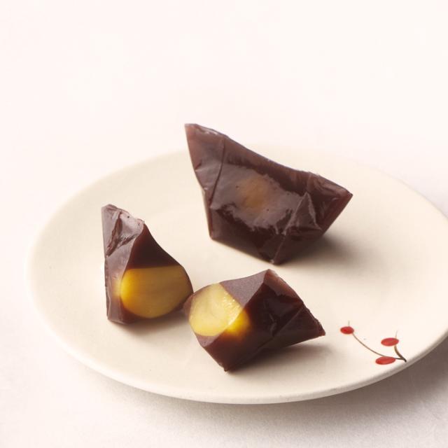 栗一粒を丸ごと小豆羹で包み込みました。栗と小豆の調和の妙味をご賞味下さい。
