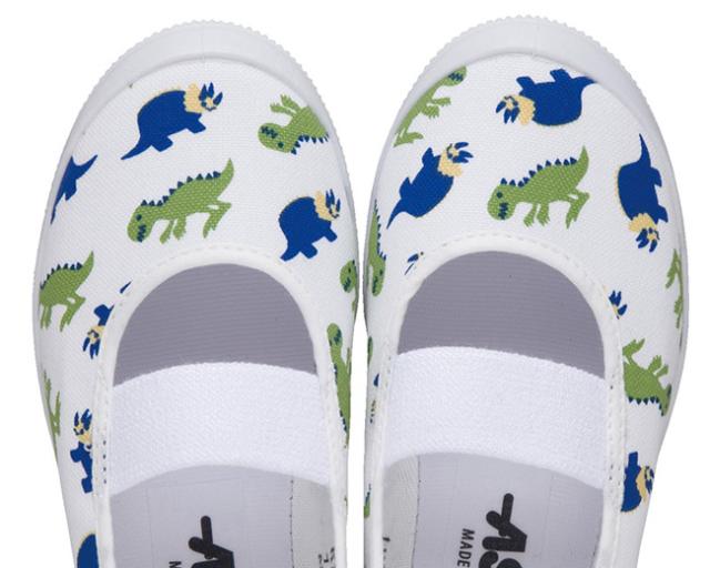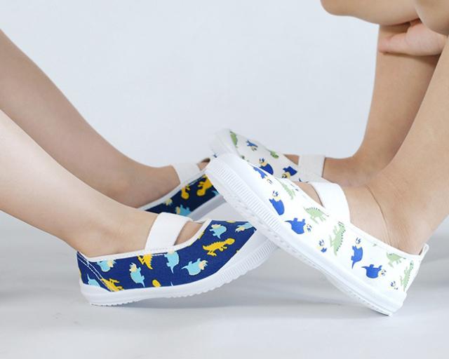 男の子が大好きな、恐竜柄のスクールシューズです。