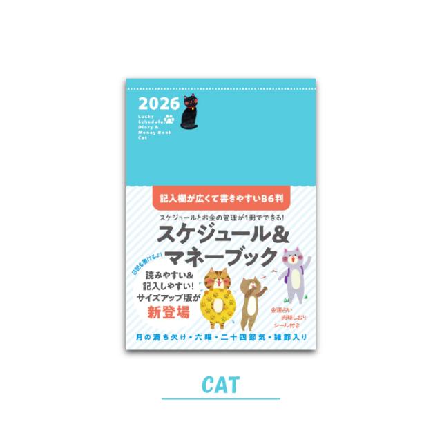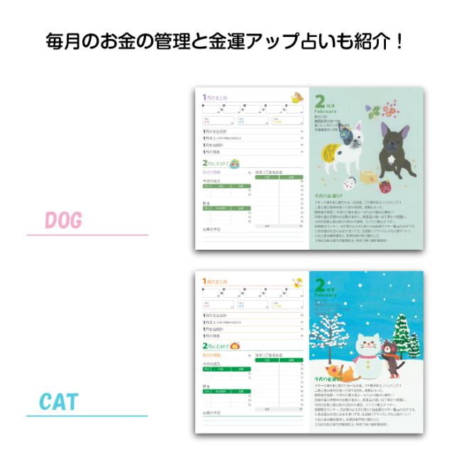 【関連商品キーワード】2026 B6判 2026 Lucky Schedule Diary Money Book スケジュール帳 ダイアリー 家計簿付き手帳 金運アップ手帳 開運手帳 占い 犬と猫の手帳 かわいい手帳 アニマル 猫 犬 ウィークリー 月曜始まり 文庫サイズ B6 貯金 節約 シール付き