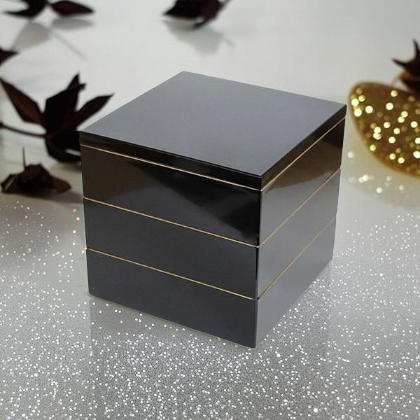 重箱 3段 6.5寸 日本製 モダン 黒 縁金 越前漆器 三段 国産 お正月 運動会 お花見 おしゃれ 迎春 割れない 耐久 業務用漆器