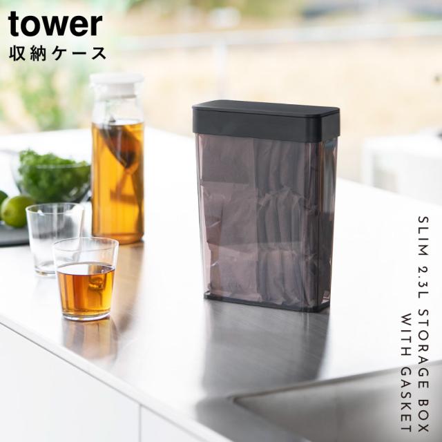 パッキン付きスリム収納ケース タワー 2.3L 山崎実業 tower 麦茶パック 密閉容器 麦茶パック入れ お茶パック おしゃれ モノトーン ホワイト ブラック 10389 10390