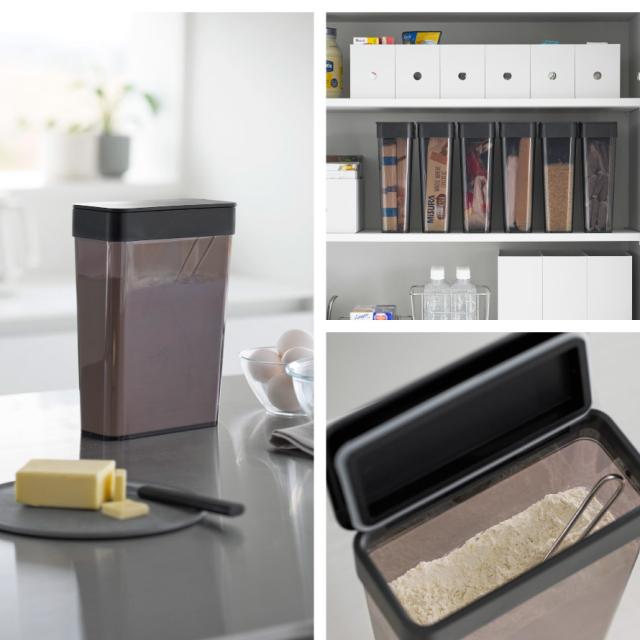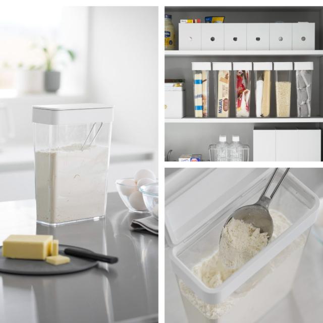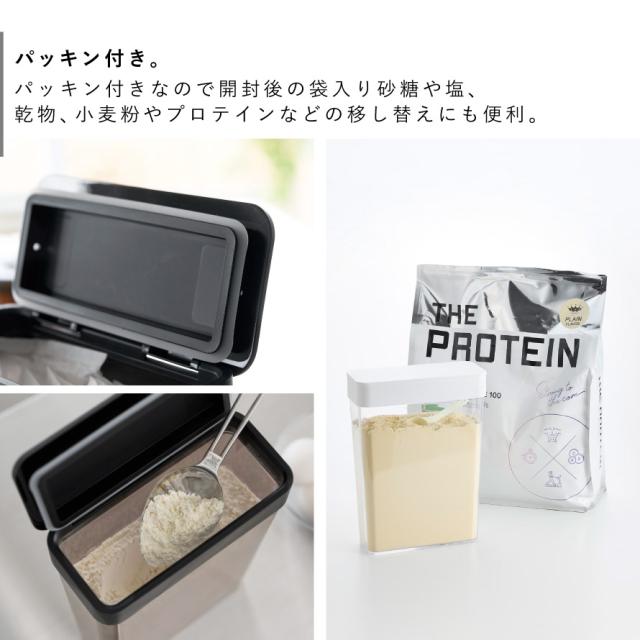 パッキン付きなので開封後の袋入り砂糖や塩、乾物なども安心して収納できます。大容量の小麦粉やプロテインなどの移し替えにも便利。