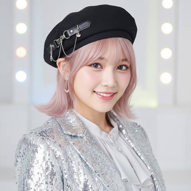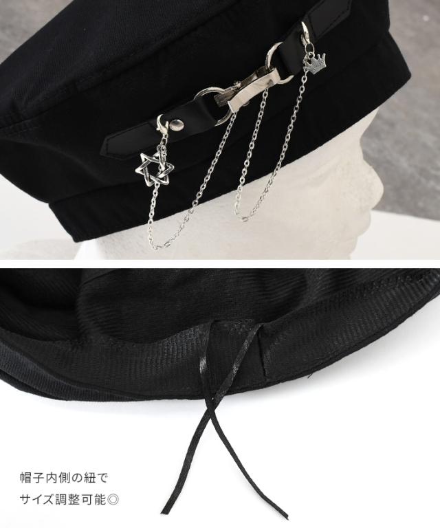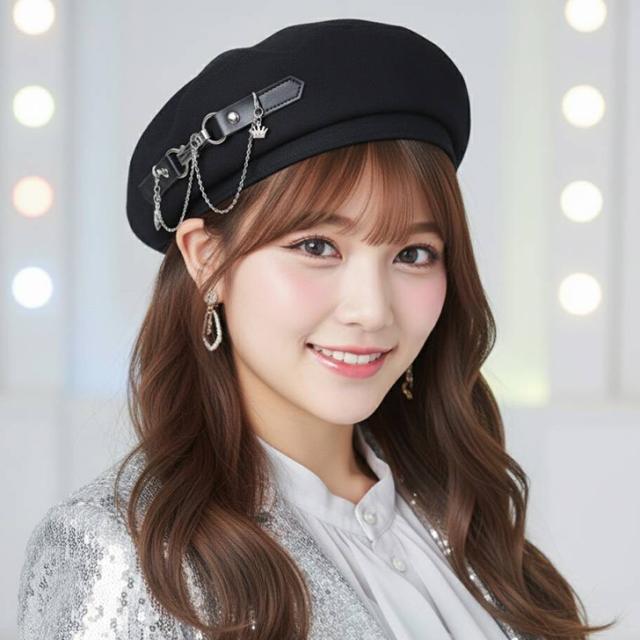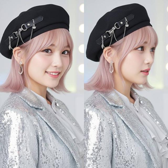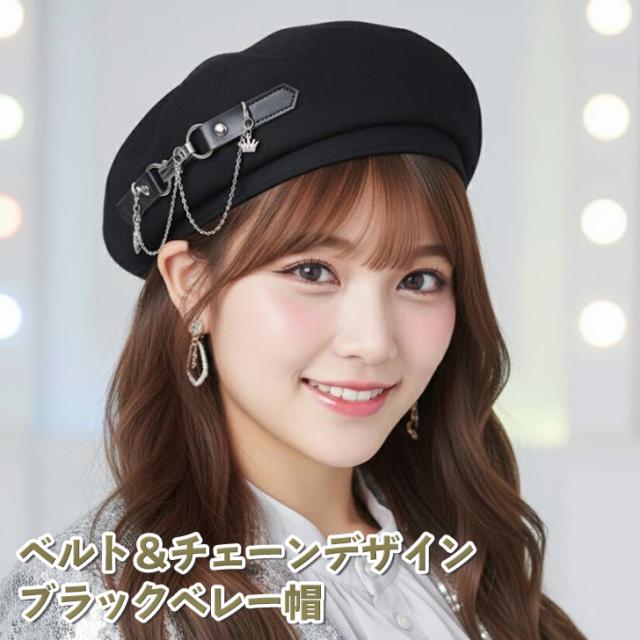 新作 ベルト&チェーンデザインブラックベレー帽 レディース メンズ ベレー帽 ベレー ハンチング 帽子 ハット キャップ キャスケット 大きめ 小さめ おしゃれ かわいい 韓国 ストリート コスプレ ハロウィン 仮装
