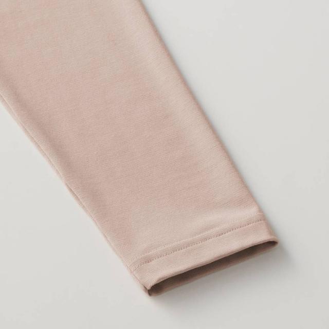 重ね着しやすい中厚素材で、アウターの袖からはみ出にくい8分袖デザイン。