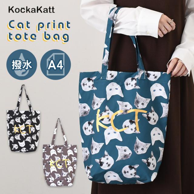 新作 KockaKatt 総柄 ネコ プリントデザイン 撥水 トートバッグ レディース 軽量 a4 大きめ 大容量 軽い 猫 ねこ アニマル サブバッグ ハンドバッグ 肩掛け 手提げ マチ広 通勤 通学 かわいい
