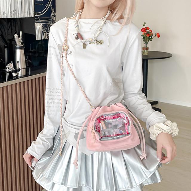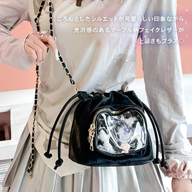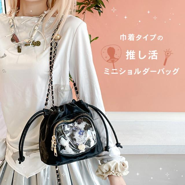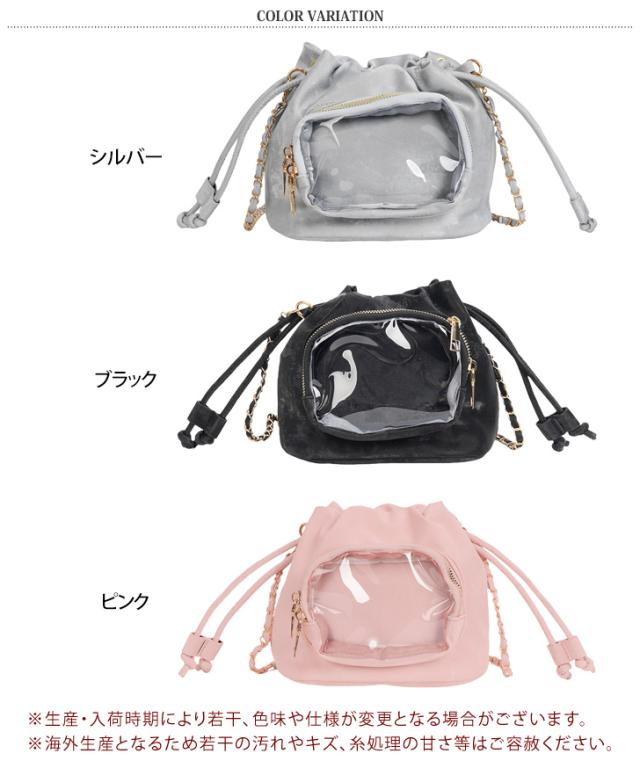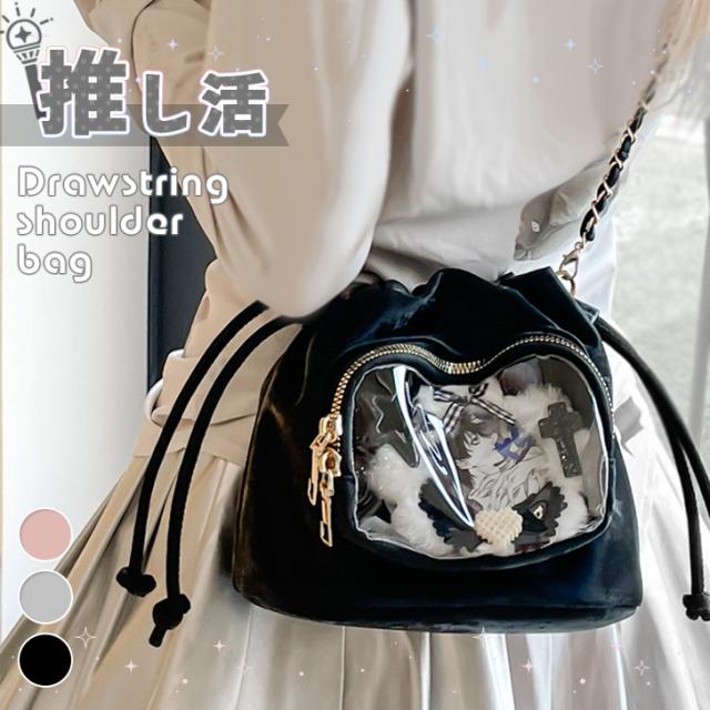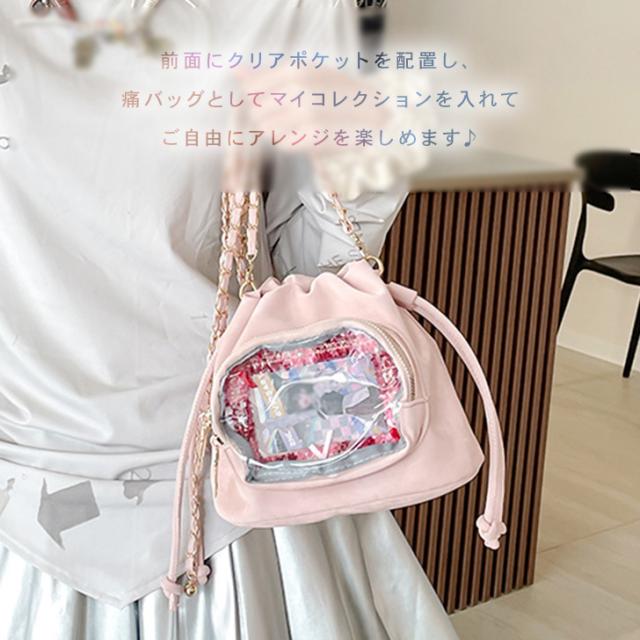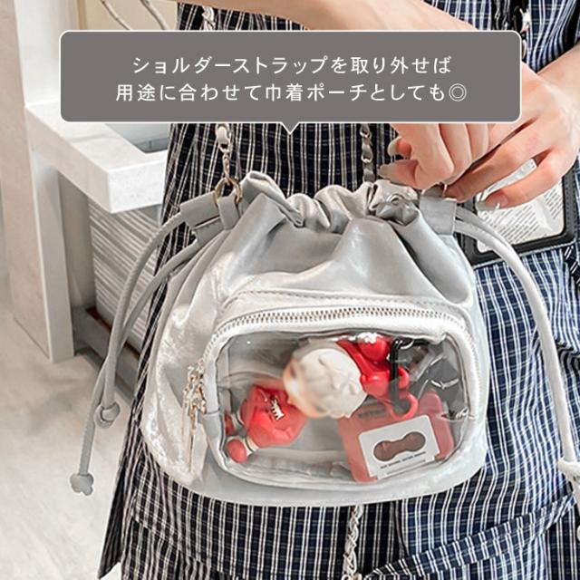 新作 クリアポケットフェイクレザー巾着ミニショルダーバッグ レディース ショルダーポーチ ミニバッグ ポーチ 小物入れ バッグ クリアバッグ 痛バッグ 推し活 グッズ 缶バッジ ぬいぐるみ 斜めがけ 肩掛け おしゃれ