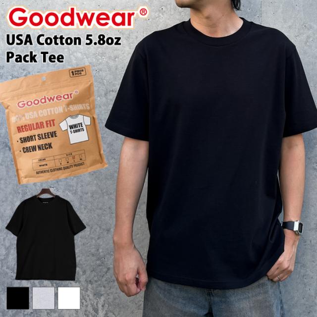 新作 POINT Goodwear グッドウェア USAコットン クルーネック 5.8オンス パックT 1枚入り 2W7-65227 Tシャツ メンズ 半袖 ブランド 綿100% 厚手 大きいサイズ 無地 トップス 5.8oz