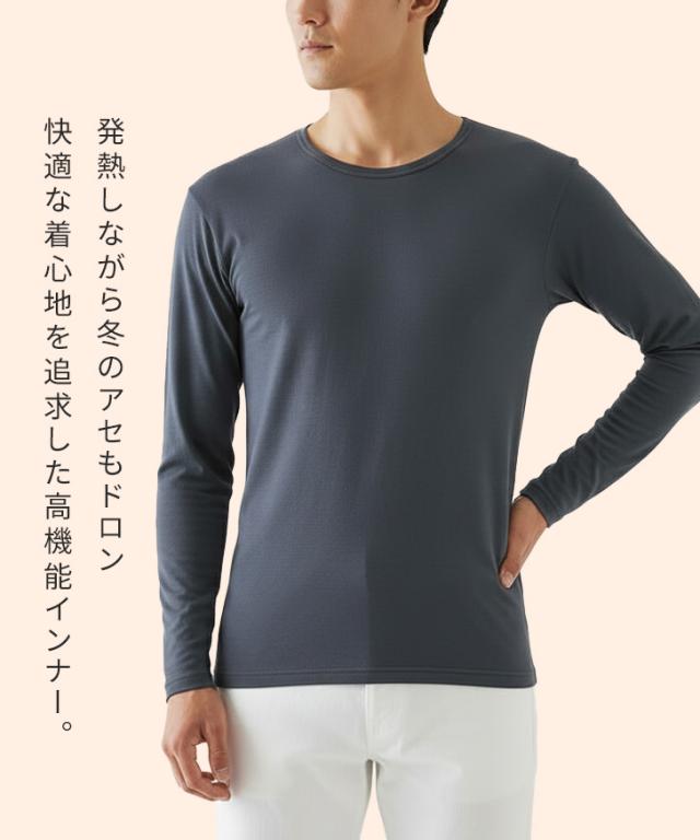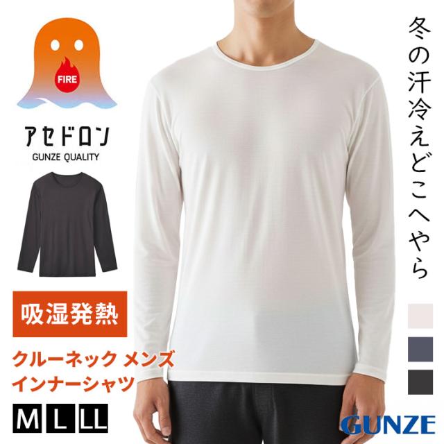 新作 GUNZE ファイヤーアセドロン 吸湿発熱 クルーネック メンズ インナーシャツ MHA408 インナー 長袖 肌着 下着 トップス グンゼ ファイアー ファイア 暖かい 保温 あったか 伸縮性 シンプル