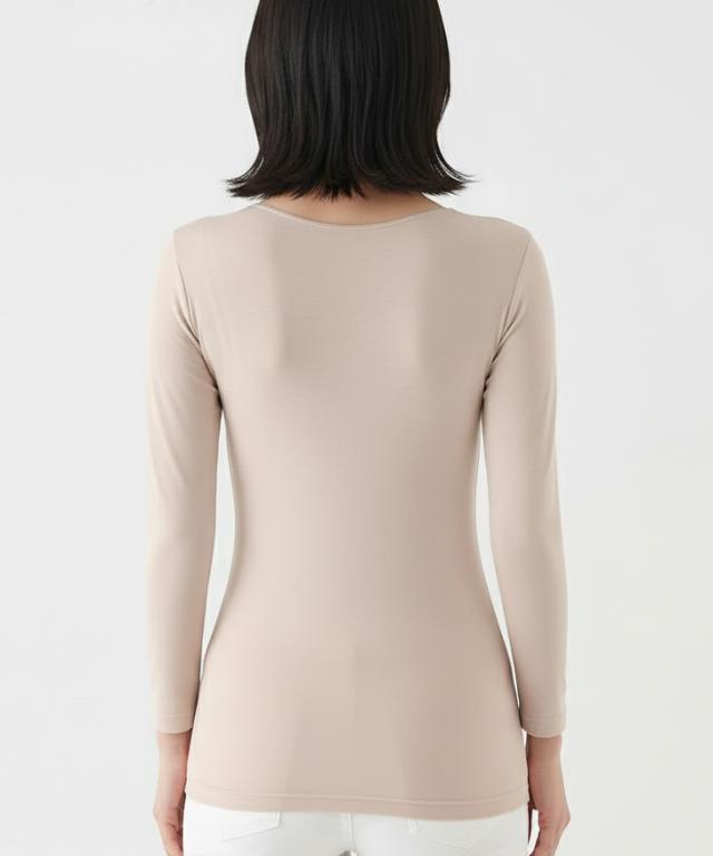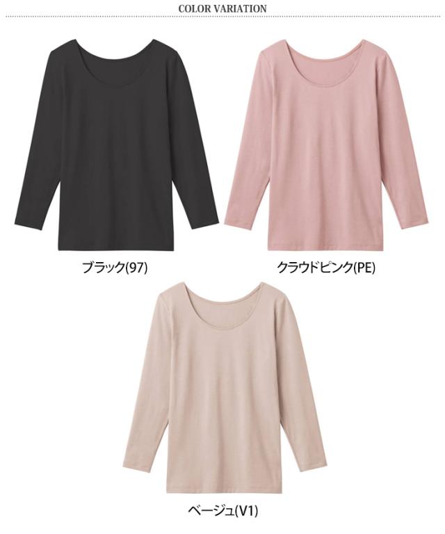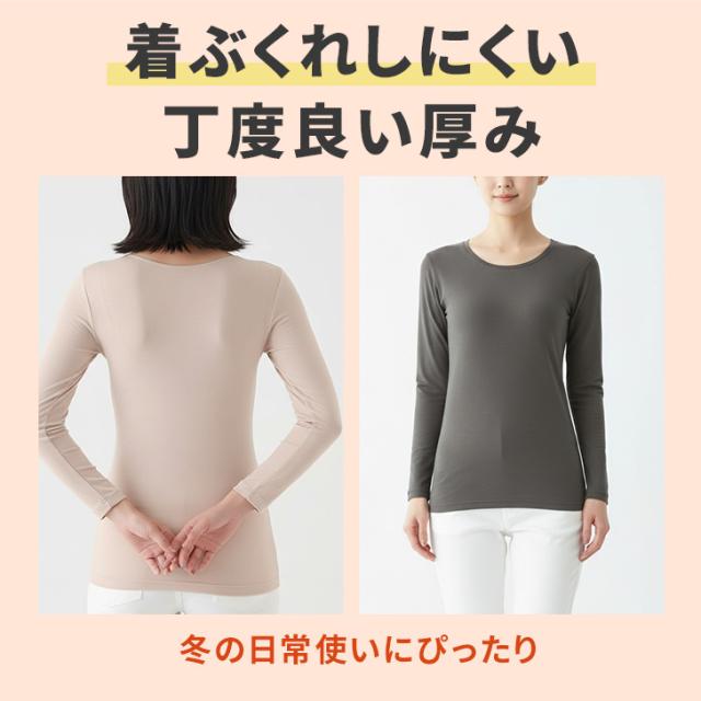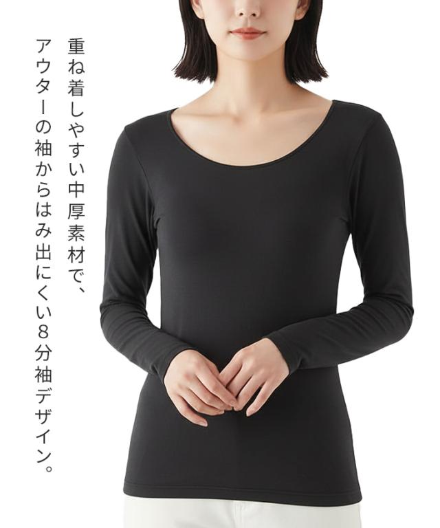 重ね着しやすい中厚素材で、アウターの袖からはみ出にくい8分袖デザイン。