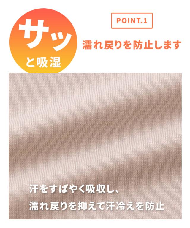 汗をすばやく吸収し、濡れ戻りを抑えて汗冷えを防止。