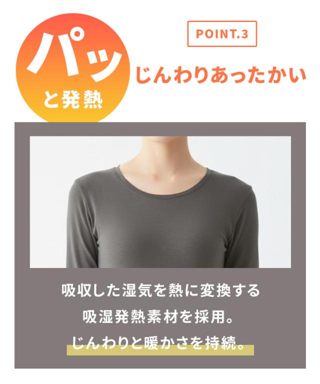 吸収した湿気を熱に変換する吸湿発熱素材を採用。じんわりと暖かさを持続。