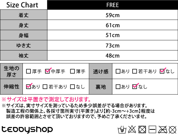 製造工程の関係上、各採寸箇所実寸(平置き)より【約-3cm〜+3cm】程度は
