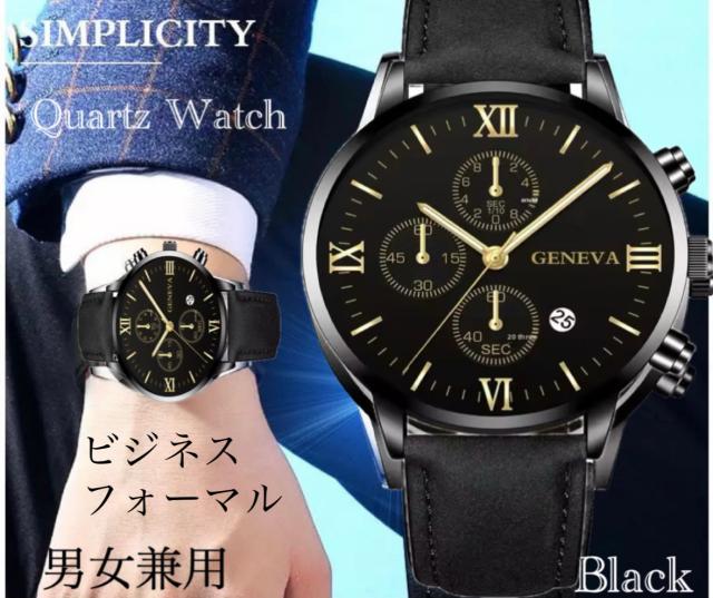 4 腕時計 時計 クォーツ スエードレザー アナログ レザーベルト カレンダー 革 ビンテージ 日付 メンズ オシャレ ウォッチ 男女兼用 ブラック