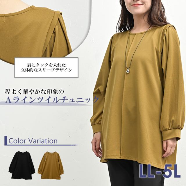 cbi-saw-tp0626 【メール便対応】肩幅華奢見えデザインのふんわりAラインツイルチュニック。 大きいサイズ レディース 長袖トップス 長袖チュニック 長袖カットソー プルオーバー Aラインチュニック 無地 Uネック クルーネック ボートネック センタータック 長袖 パフスリーブ 切り替え 肩幅華奢見せ 春服 秋服 冬服 春物 秋物 冬物 春トップス 秋トップス 冬トップス 体型カバー 二の腕カバー お尻が隠れる着丈 お尻すっぽり丈 チュニック丈 ゆったり 大きめ 大人 カジュアル フェミニン ナチュラル 大人可愛い きれいめ かわいい 着こなし おしゃれ 定番 春コーデ 秋コーデ 冬コーデ ファッション 大きめ 女性 婦人用 ミセス 30代 40代 50代 2025 秋新作 春 秋 冬 黒 LL 3L 4L 5L 13号 15号 17号 19号 cbi-saw-tp0626