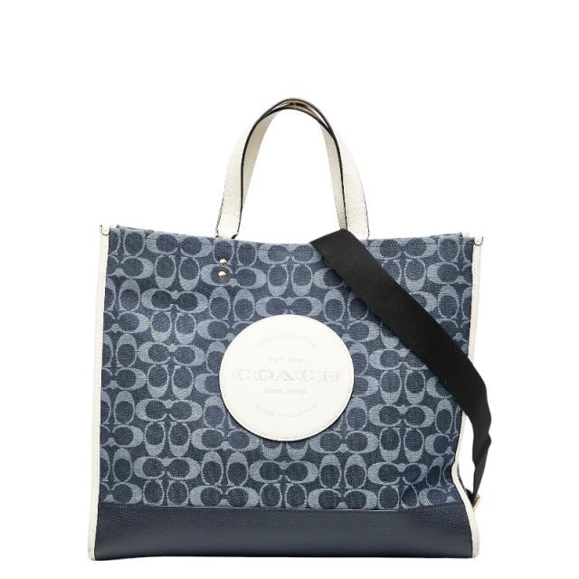 コーチ シグネチャー デンプシー トートバッグ ショルダーバッグ 2WAY C2827 ブルー ホワイト デニム レザー レディース COACH 【中古】