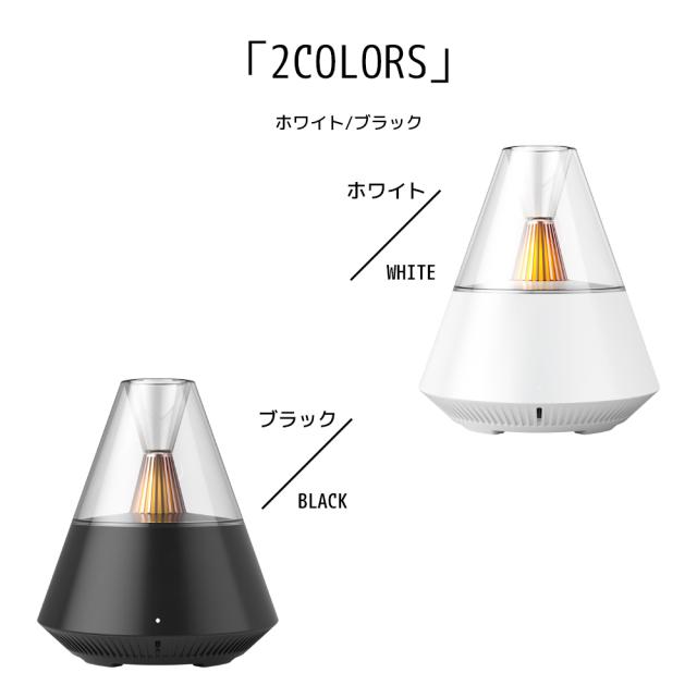 内部のLEDライトが焚き火のように揺らめき、リラックス効果を高めます。