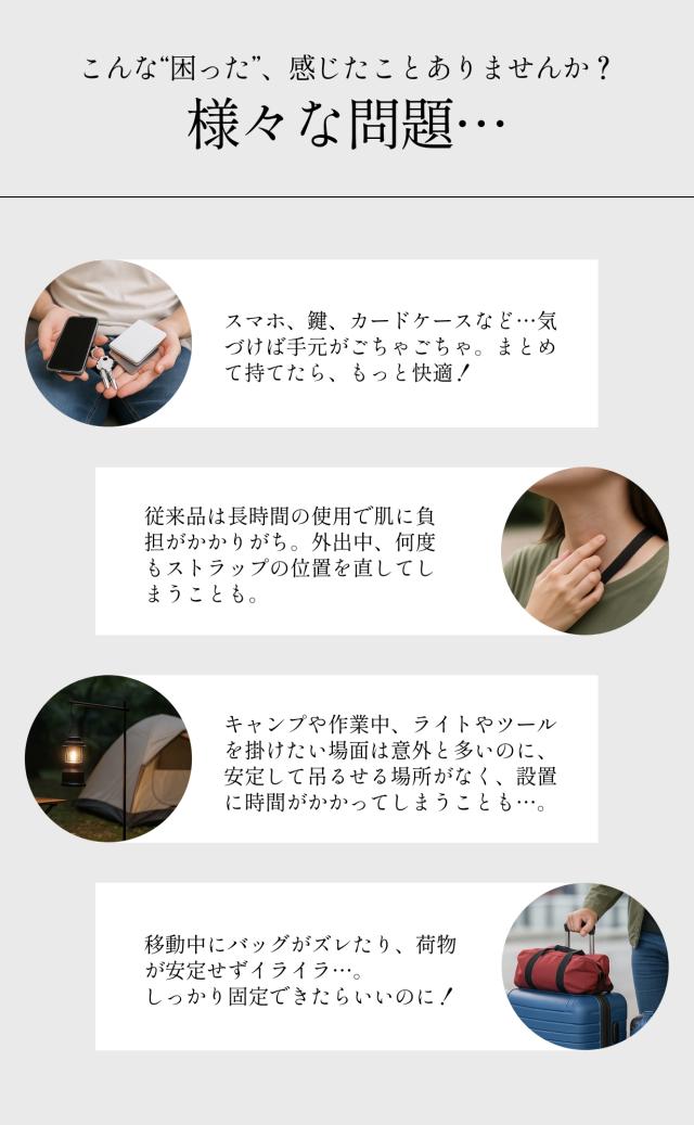 【様々な用途】スマホ・ポーチ・鍵などはもちろん財布に付けてネックウォレットにしたり、ネームホルダーに付けたりと様々な用途でマルチバッグやネックポーチのようにご使用いただけます。