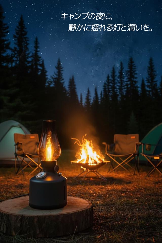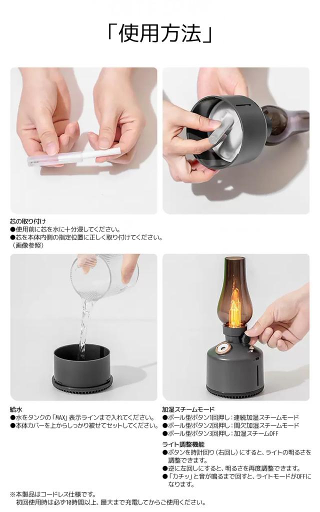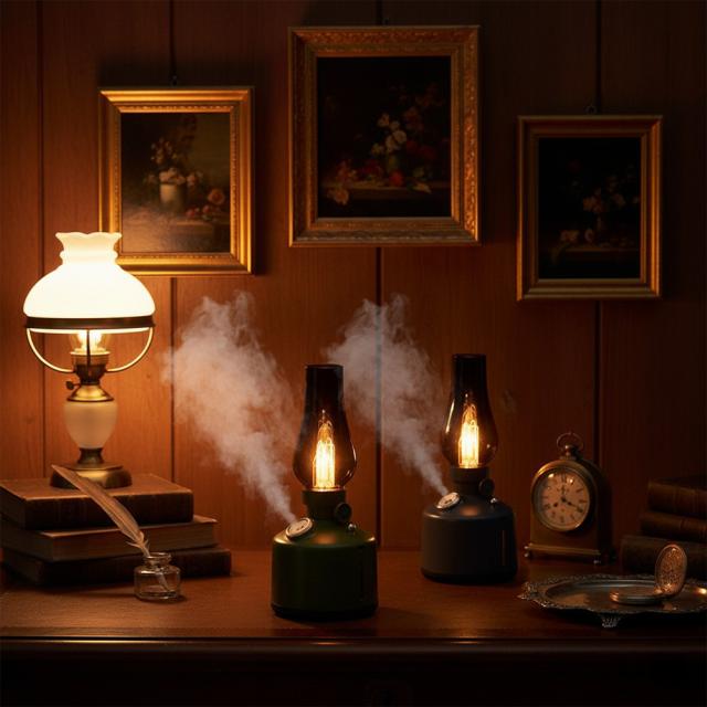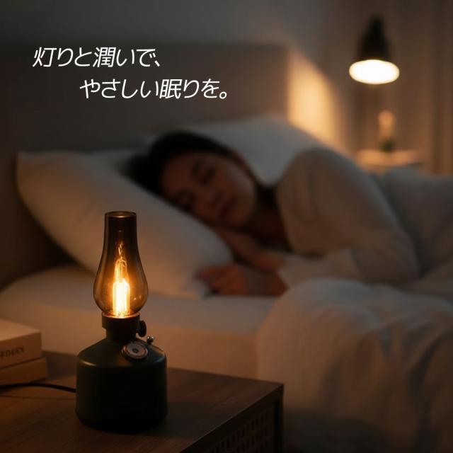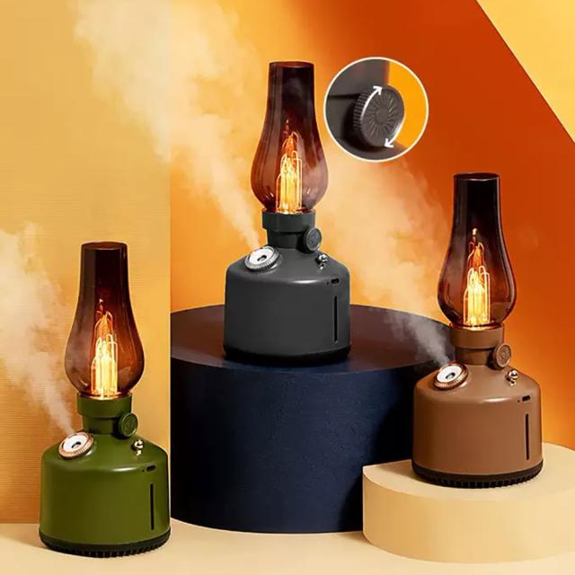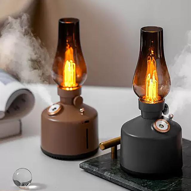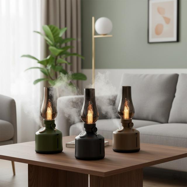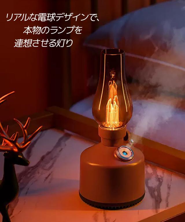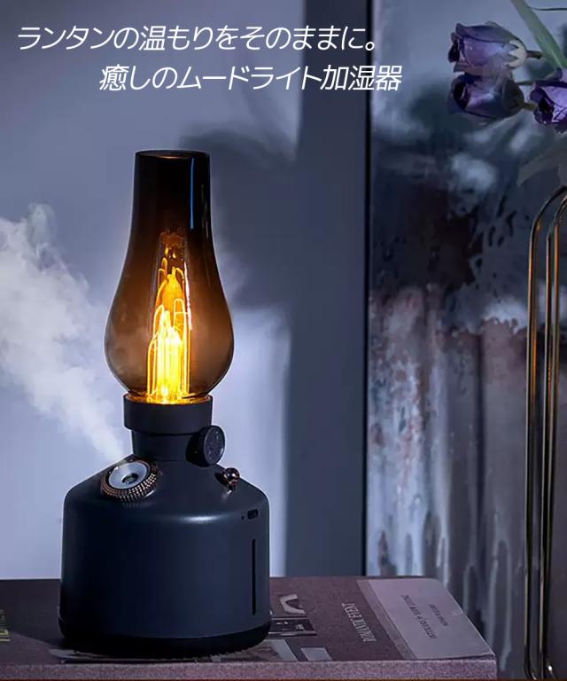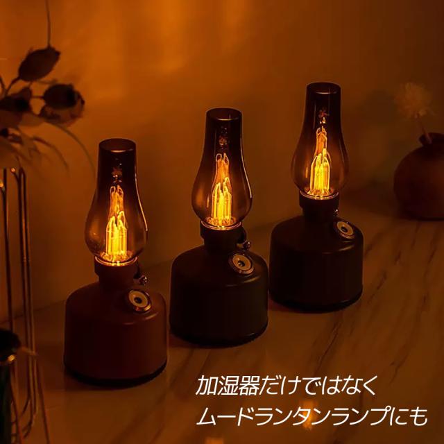 アンティーク調のランプをモチーフにしたデザイン加湿器。お部屋やオフィス、キャンプなど幅広いシーンに調和します。