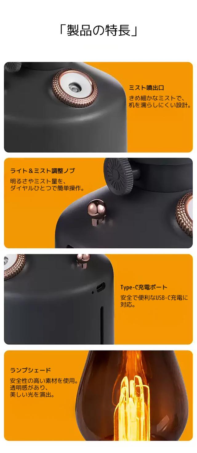 加湿器 ランプ型加湿器 アロマ加湿器 ディフューザー 加湿器 ミスト 加湿器 コードレス 超音波式 静音 ミスト 卓上 加湿器 照明 ムードライト 夜間ライト 癒し インテリア 寝室 秋冬 乾燥対策 ディフューザー ヒューミドファイア おしゃれ インテリア雑貨 キャンプグッズ