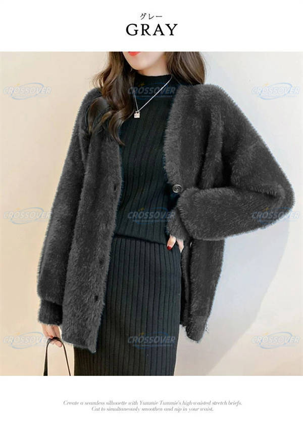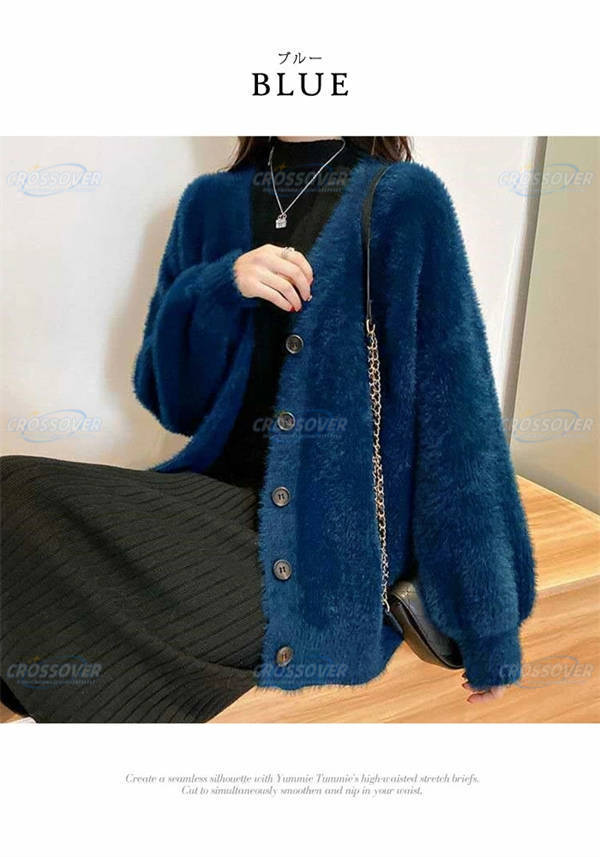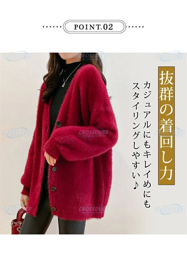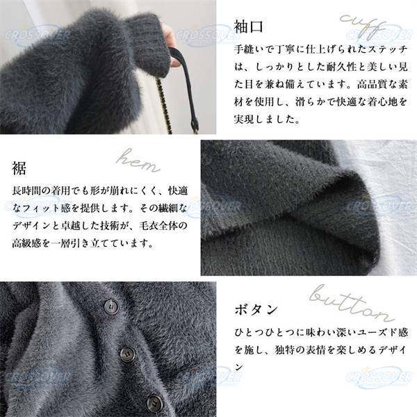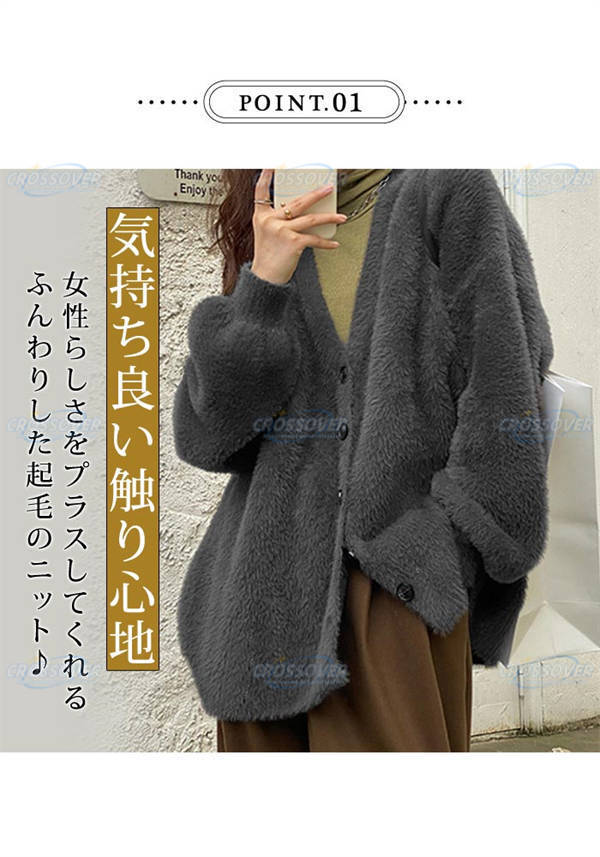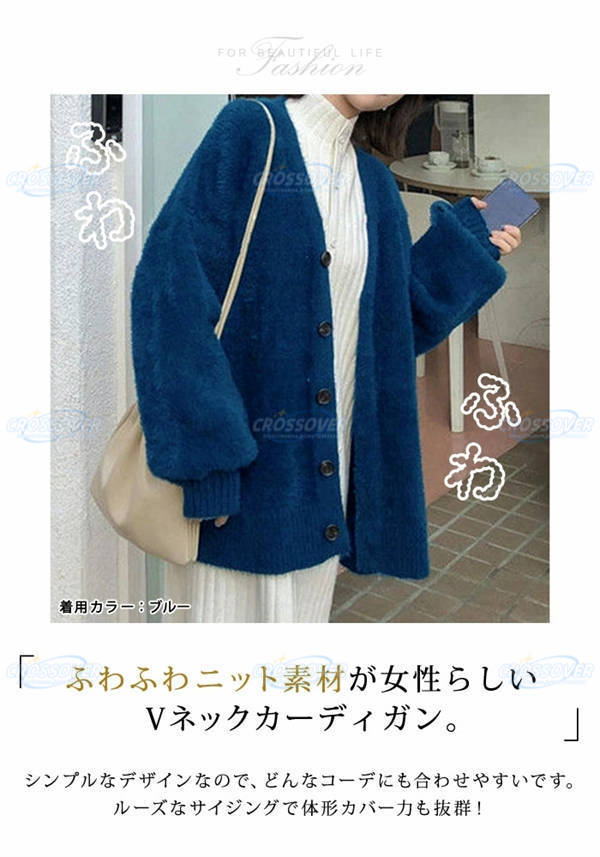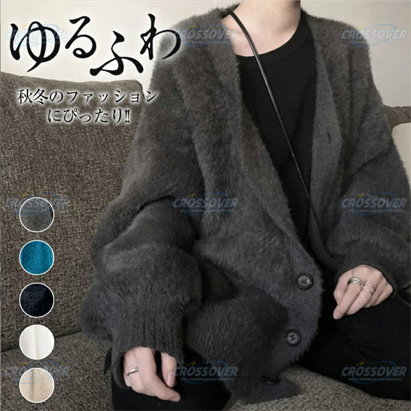 カーディガン ニット Vネック ニットコート トップス ジャケット レディース シャギーニット フェザーカーディガン ニットカーデ ゆるニット 体型カバー プルオーバー ふわふわ あったか 防寒 春 秋 冬