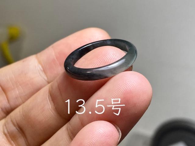 L14-117 氷種 高級感 黒翡翠 煙灰色 13.5号 天然グアテマラ産 A貨 本翡翠 くりぬき リング