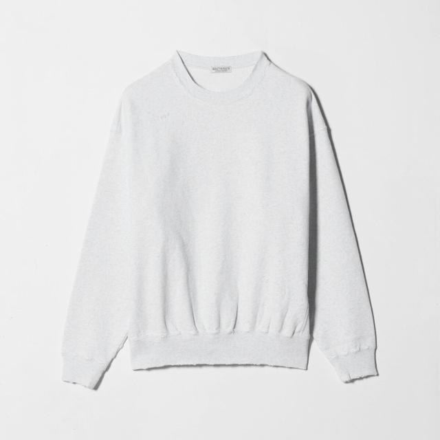 ネックや裾、袖口に施されたクラッシュ加工が、程よい抜け感とヴィンテージライクな雰囲気を演出するクルーネックスウェット。