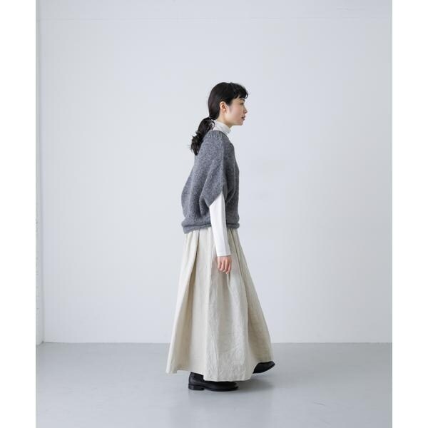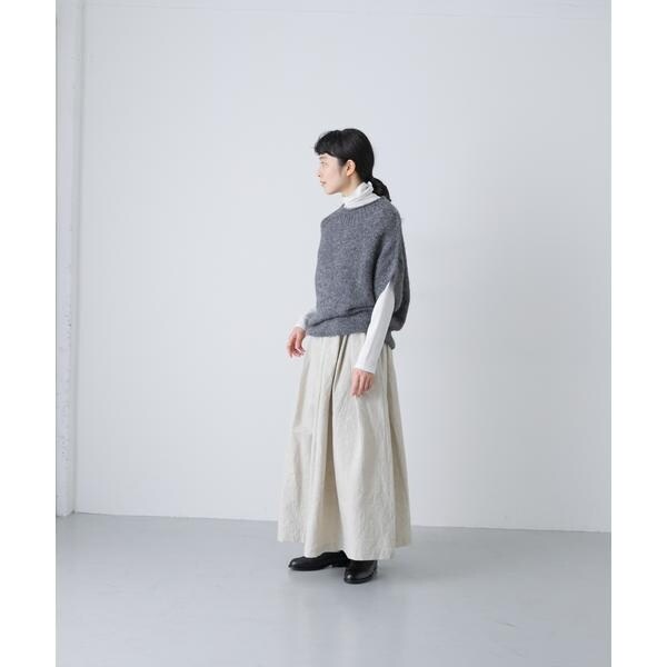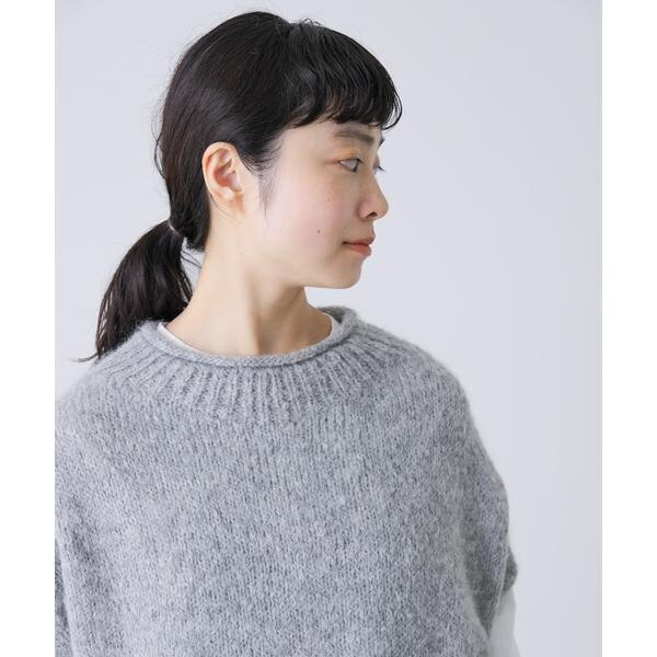 柔らい肌触りと軽やかな着心地が魅力的な一品。毛足の長いアルパカの風合いがシーズンムードを高めます。ドロップショルダーのシルエットやワイドな身幅などシンプルながらも細部にこだわったデザイン。太めのリブとほんのりカールした襟のディテールもアクセントに。抜けた雰囲気をまとい、大人のスタイリングに相性抜群です。シャツやカットソーなど様々なトップスと合わせてお楽しみください。